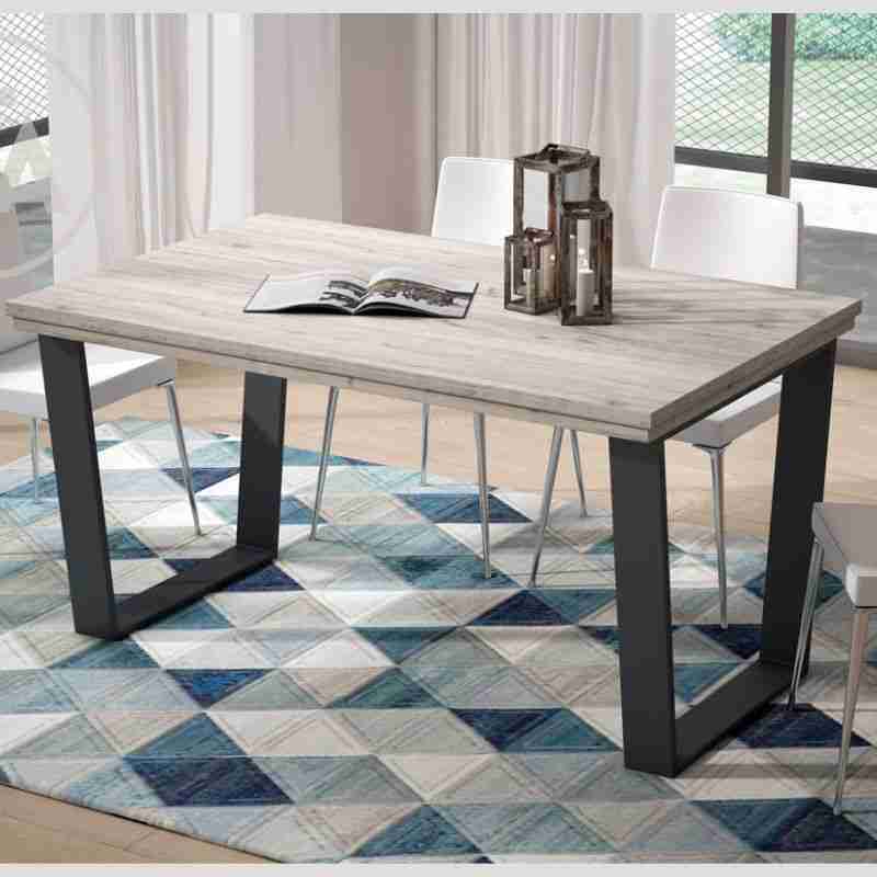 Mesa de comedor fabricada en melanina de la mejor calidad. Disponible en color cambrian y patas metálicas grafito. La mesa requiere montaje