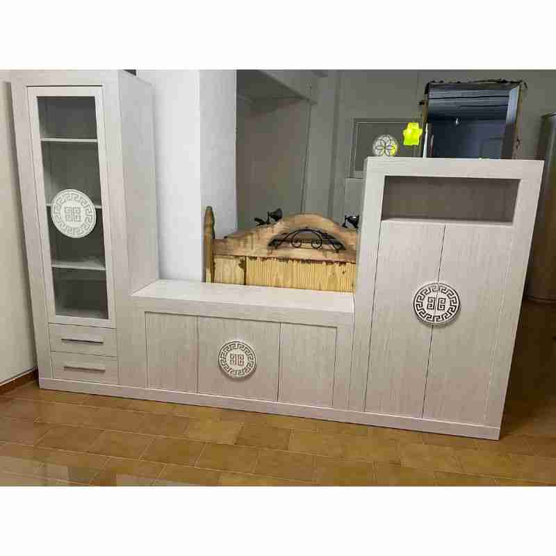 Salón único, fabricado en tonos claros y greca en sus tiradores que lo hacen original y único